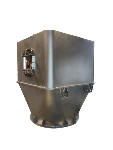 Trémie destinée au stockage de farine et installée au-dessus d’une ligne d’ensachage.
